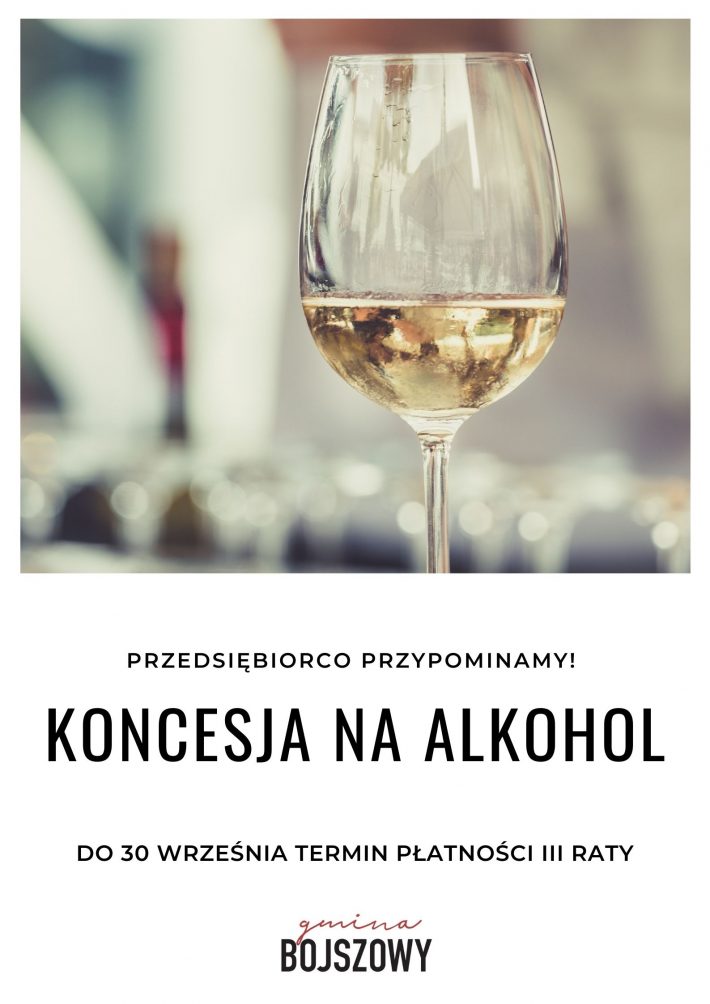 Przypominamy przedsiębiorcom prowadzącym sprzedaż napojów alkoholowych, że 30 września 2021 r. mija termin wpłaty III raty opłaty za korzystanie z zezwoleń na sprzedaż napojów alkoholowych.