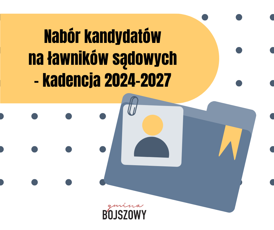 W związku z wnioskiem Prezesa Sądu Okręgowego w Katowicach przekazanym Radzie Gminy Bojszowy o przeprowadzenie wyborów uzupełniających ławników na kadencję 2024-2027 ogłasza się nabór kandydatów na ławnika do orzekania w [ … ]