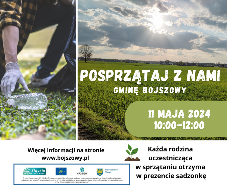 Serdecznie zapraszamy na wspólne sprzątanie gminy Bojszowy, które planujemy 11 maja 2024 r. w godzinach 10:00-12:00. Proponujemy wybór 3 lokalizacji w podziale na miejscowości: Bojszowy i Jedlina Świerczyniec i Bojszowy [ … ]