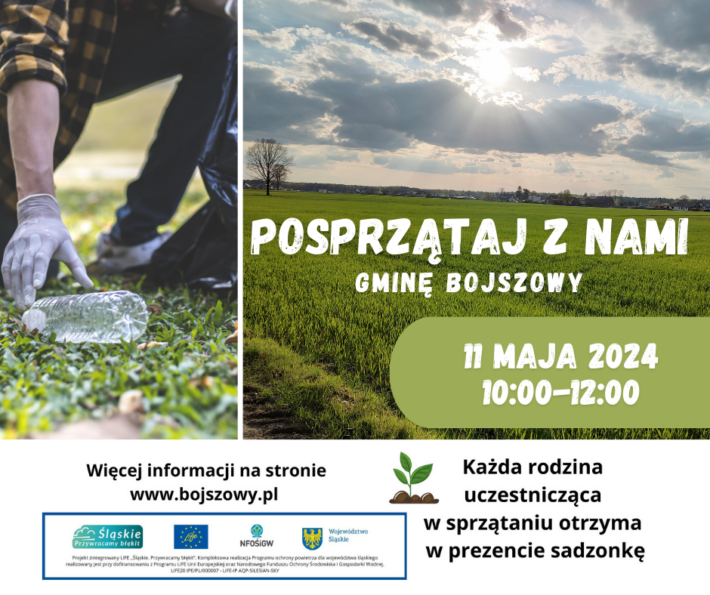 Serdecznie zapraszamy na wspólne sprzątanie gminy Bojszowy, które planujemy 11 maja 2024 r. w godzinach 10:00-12:00.